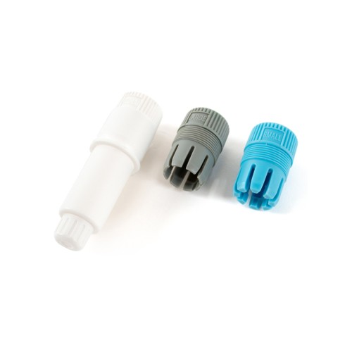 - 3 threaded adapters (collets) for varying pen sizes—small (blue), medium (white), and large (grey)