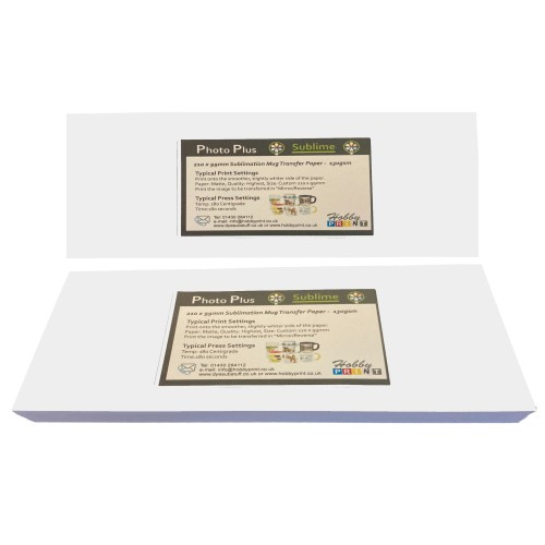 These sublimation sheets are made to work on all 10oz dye sublimation coated mugs, ceramics, aluminium, or polymer. The size of the sheets ensures near, full available mug surface printing. Please bear in mind that Mug dimensions do vary in the circumference and height between different suppliers.