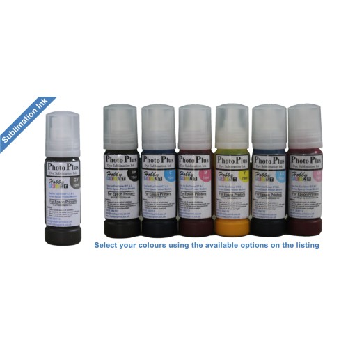 Tags: 70ml Bottles, PhotoPlus Sublimation Ink, 7 colours, 4 different ink sets, Epson Ecotainer Printers, Select Colours, select ink sets