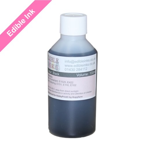 • 1 x 100ml Black Edible Ink for use with Canon Printers for printing on all edible printable papers