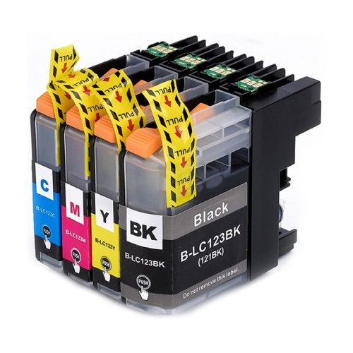 A 4 cartridge compatible LC123 CMYK ink cartridge set, compatible with Brother LC123 series cartridges and consisting of 4 colour caridges, Cyan, Magenta, Yellow and Black (CMYK).The cartridges are a universal compatible cartridge set that that works with all Brother printer models that use the LC121, LC123 and LC125XL series cartridges. The cartridges are 4 "individual" single colour cartridges that contain high quality ink. Individual cartridges allow individual replacement of "empty only" cartridges.