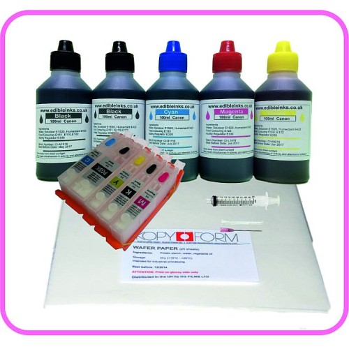 • Edible Printer Refillable Cartridge Accessory Kit for Canon PGI-550 with Wafer Papers.