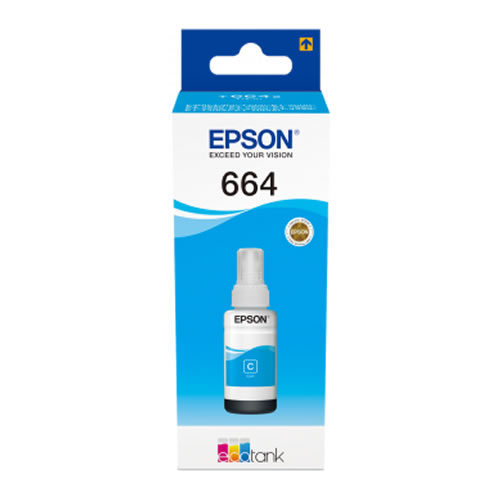 EP-664 Cyan Dye Bottle of Ink for Epson Cartridge-less Ink Tank Printer Models - 70ml.