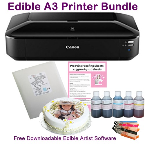 Edible A3 Printer Bundle, Canon IX6850, with Edible Ink Accessory Pack & Icing Sheets.